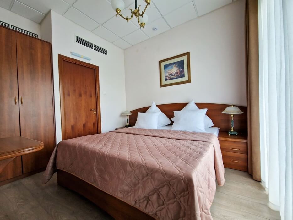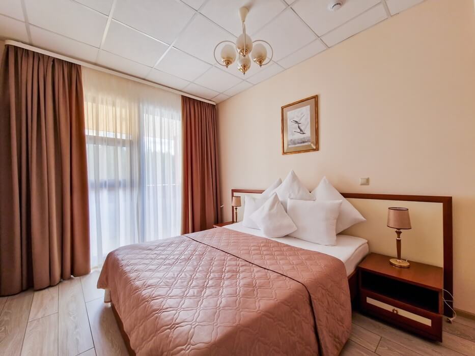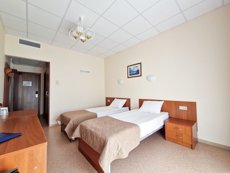 В санатории для гостей созданы все условия: комфортные номера, крытый бассейн, спорткомплекс, тренажерный зал, бильярд, настольный теннис, библиотека, лодочная станция, конференц-зал. К услугам гостей — пункт проката сезонного инвентаря: палки для скандинавской ходьбы, коньки, лыжи, велосипеды, ролики.