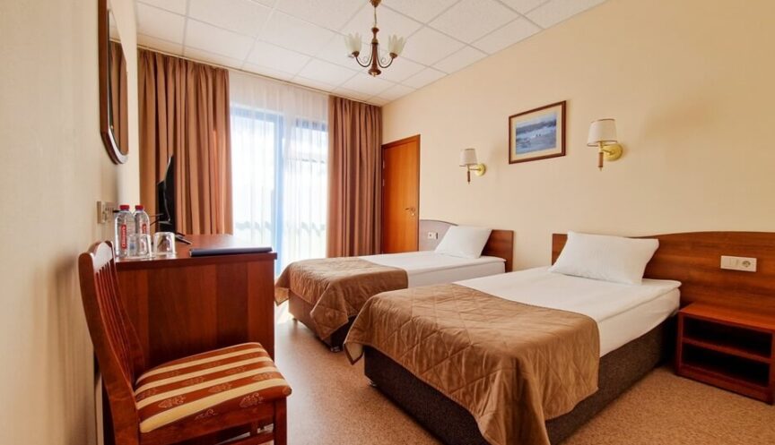 Двухместный номер – две односпальные кровати, санузел с душевой кабиной/ванной, телевизор, холодильник, телефон, система охлаждения в летний период, фен (по требованию), банные принадлежности.